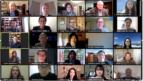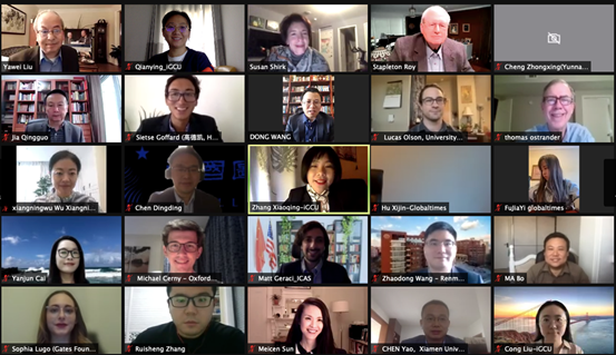 2021年4月10日,正值中美“兵乓外交”50周年纪念日,环球时报、北京大学中外人文交流研究基地、美国卡特中心共同举办“中美青年学者论坛五周年纪念”特别活动。活动以云端论坛形式举行,邀请外交部原副部长、原国务院侨务办公室副主任何亚非,美国前助理副国务卿、前驻华大使芮效俭(Stapleton Roy)以及美国前副助理国务卿、加州大学圣迭戈分校教授谢淑丽(SusanShirk)等中美关系领域的资深专家与历届参与论坛的青年学者梳理双边关系发展历程、寻找两国人文交流契机,并就中美青年在全球范围的机会与责任展开了充分、热烈的讨论。美国前总统、卡特中心创始人吉米·卡特(Jimmy Carter)为本次活动寄语。