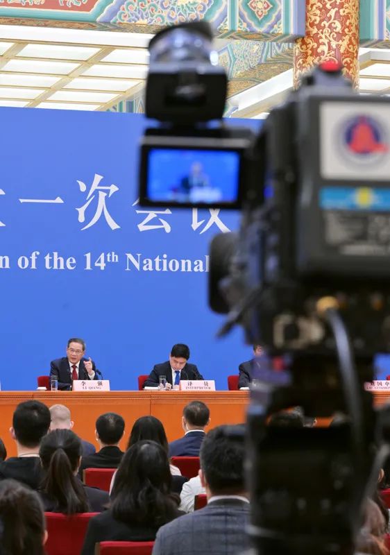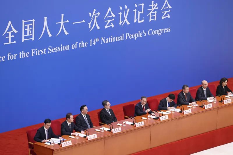 3月13日,十四届全国人大一次会议13日上午在人民大会堂举行记者会,国务院总理李强应邀出席记者会并回答中外记者提问。国务院副总理丁薛祥、何立峰、张国清、刘国中参加。新华社记者 岳月伟 摄