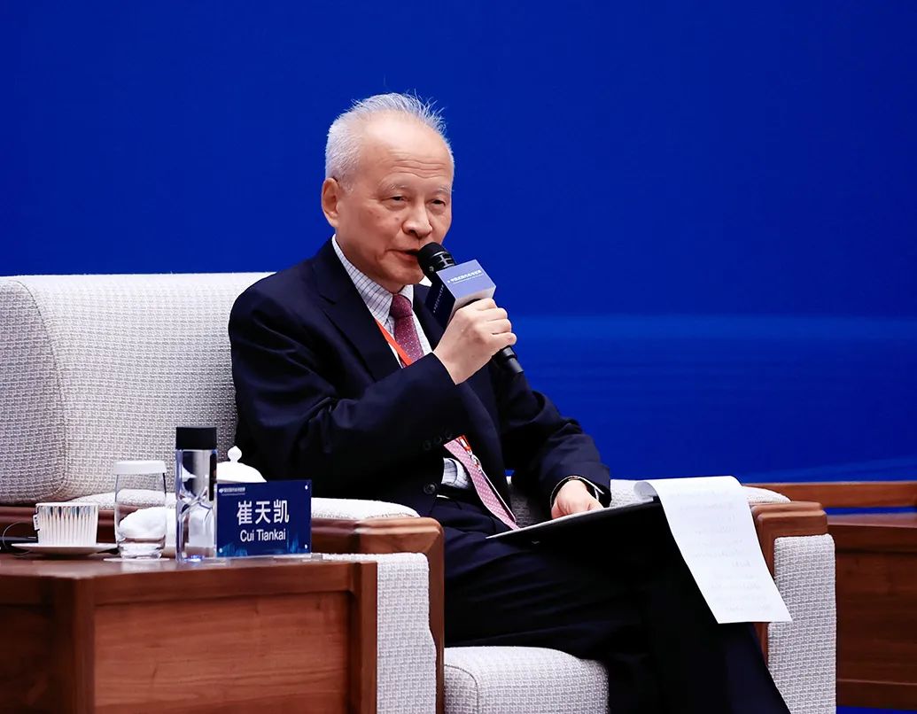 外交部前副部长、前驻美国大使崔天凯表示,中国式现代化或者中国发展背后的推动力,实际上是中国为人民谋幸福、为民族谋复兴,这是根本动力。中国人民追求幸福生活和民族复兴的权利是不可剥夺的,是天经地义的。中国式现代化是基于中国的国情,希望大家都能以更加开放的心态、更加发展的眼光看待各个国家探寻现代化的路径和方法。