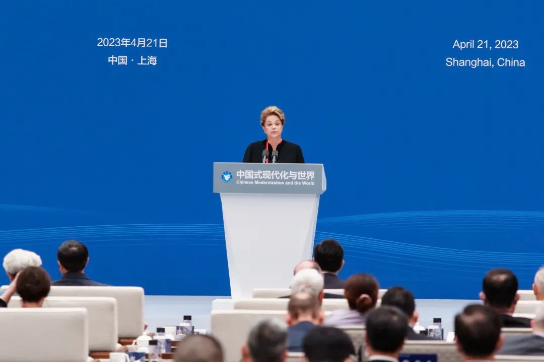 金砖国家新开发银行行长、巴西前总统罗塞夫(Dilma Rousseff)发表致词。“中国提出并推动的现代化,提供了一个全新的选择,这表明一个新的世界完全是必要和可能的。”她说,在这个因为气候变化、地缘政治冲突加剧、产业链中断以及以回流为特征的去全球化运动而导致的碎片化的时期,这一点至关重要。